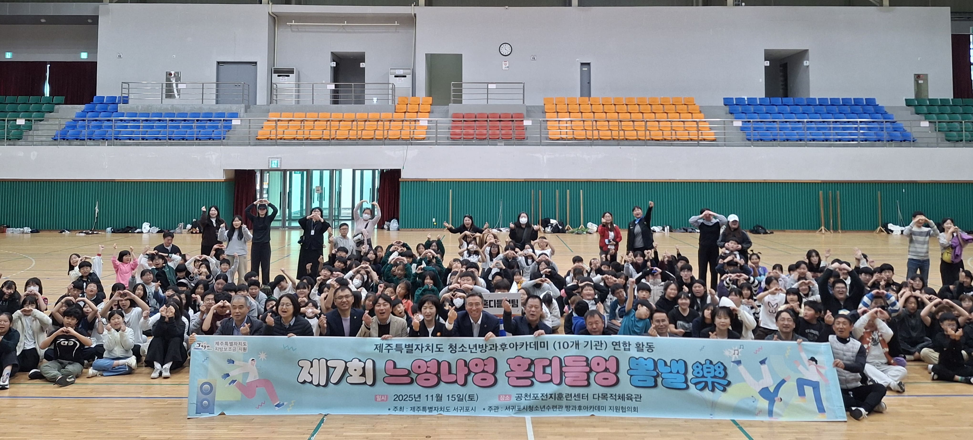 둘째 날에는 제주도내 방과후아카데미 연합체육대회 ‘느영나영 혼디들엉 뽐낼樂’에 참여하였습니다.
